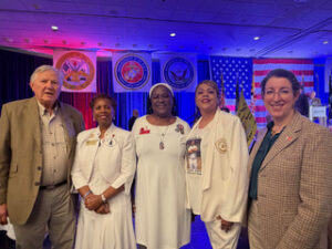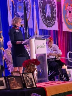 Maryland Gold Star Mothers were invited to the 8th Annual Welcome Home Vietnam Veterans, hosted by Gilcrest, at Martins West in Baltimore, Maryland. Gold Star Mothers Joy Goode, Janice Chance, and Donna Robinson represented the Maryland Chapter. The moms were honored to be seated at a table with Vietnam Veterans. Lt. General R. Scott Dingle, US Army (Ret.), spoke in support and assistance for our veterans. Joan Goldberg CEO, Boulder Crest Foundation spoke on post-traumatic growth. The Keynote speaker was Vietnam Veteran, Karl Mariantes. Mr. Mariantes spoke about his life experiences during military service and his life afterwards. Colonel John C Astie, USMC (Ret.) led the closing remarks. The Maryland Gold Star Mothers were honored to welcome home the Vietnam Veterans. The hall was full of Vietnam Veterans, family and friends.