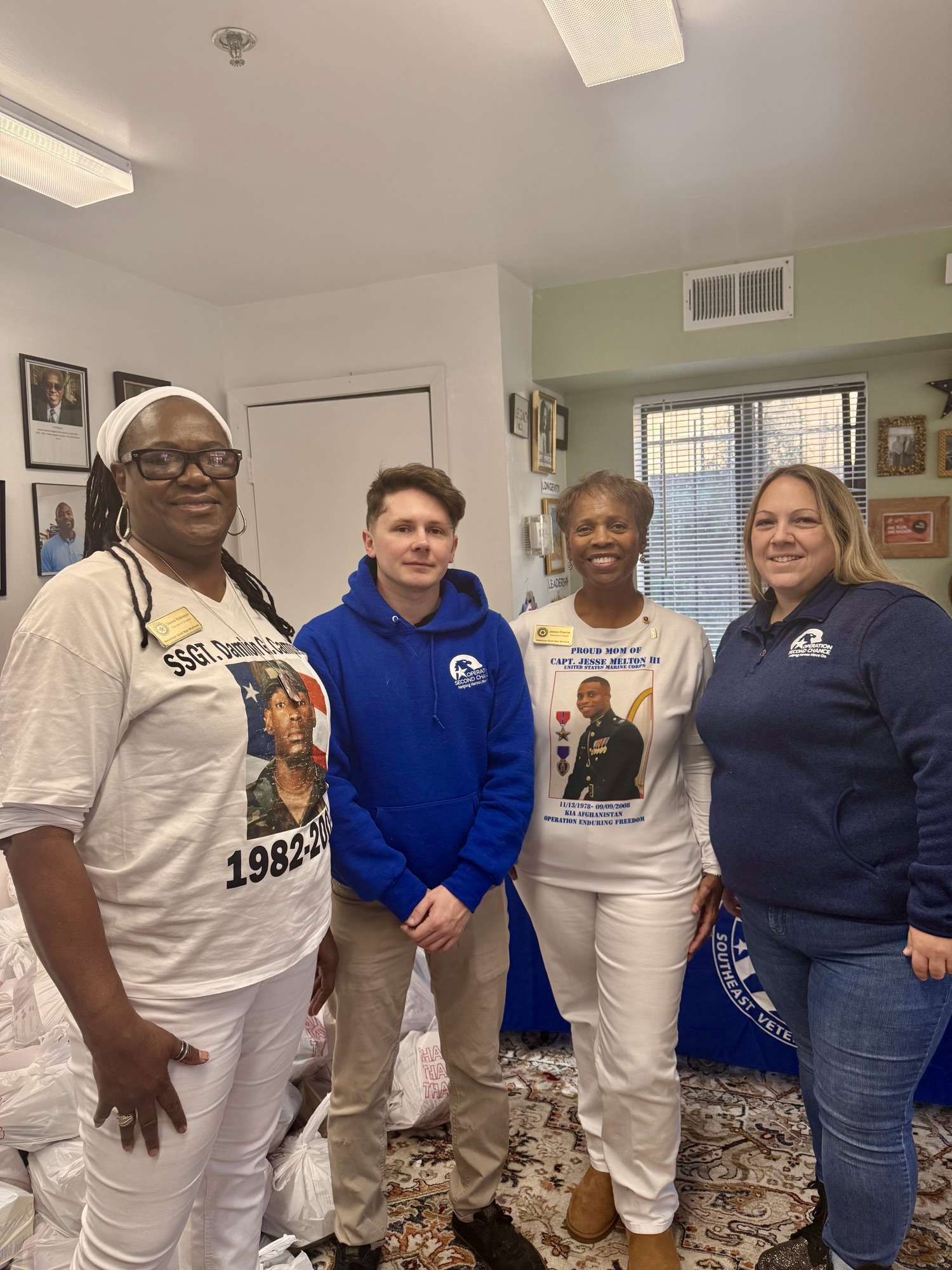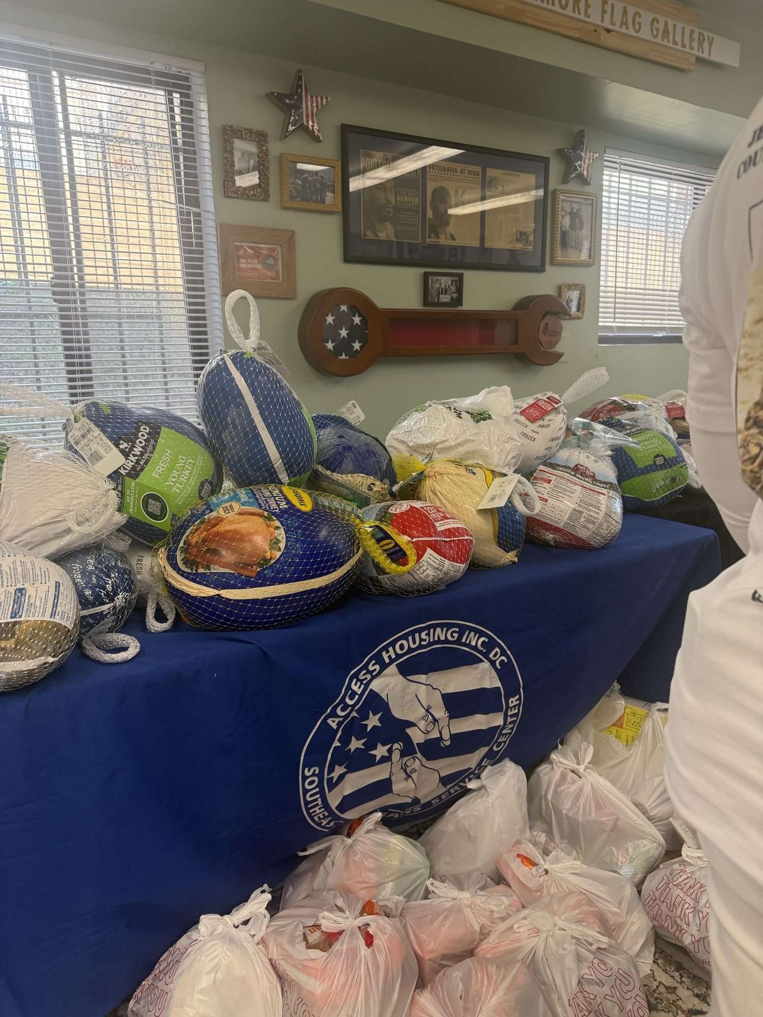 Gold Star Mothers Maryland Chapter, Inc members were invited by Mr. Walter Elmore, Community & Civic Engagement Coordinator/National Veterans Service Officer Access Housing, Inc to volunteer at their (2025) Operation Turkey Dinner & Fix-ins distribution. Access Housing sponsored a two-day distribution, November 24 th and 25th,2025 at the Access housing building located at 820 Chesapeake Street, SE, (Ward 8), Washington, DC. Donna Robinson and Janice Chance Represented the MD Chapter on November 24, 2025. They joined Operation Second Chance staff Ms. Stephanie Albrecht, Administrative Assistant, and Mr. Colton Trahan, Director of Operations Heroes Ridge at Raven Rock/ U. S Army National Guard; Rear Admiral Matthew Kleinman, United States Public Health Services and members of his team; U. S Armed Forces Military Sorority Sigma Phi Psi members; Ms. Tyra Nelson, Workforce Program Coordinator, and Ms. Wanda Dade Case Manager, U.S VETS organization. The volunteers assisted with the assembly of the food bags and distribution. The Turkeys and fix- ins were distributed to former homeless veterans and their families, as well as veterans who have been negatively impacted by the recent federal government shut down and furloughs. Rear Admiral Kleinman, Mr. Gregory Crawford, Executive Director Access housing and Mr. Elmore thanked the volunteers for their participation. Mr. Jerryl Bennett, HUD Liaison at the U. S Department of Housing and Urban Development was also in attendance to thank the veterans and to support the volunteers. Donna and Janice also seized the opportunity to thank the veterans and the volunteers for their service and wished them a Happy Thanksgiving as they were distributing the Turkeys and the fix ins. The veterans expressed their appreciation for the Thanksgiving Turkeys and the fix-ins.