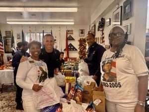 Donna, Janice and all of the volunteers were given the opportunity to spend time interacting with some of the veterans during lunch that was provided for the veterans and the volunteers. At the end of the food distribution Janice and Donna were asked by Mr. Elmore to share about their fallen hero and the Gold Star Mothers organization. The volunteers expressed their appreciation to the moms and shared that they are looking forward to serving again with them at other scheduled events. It was a beautiful sunny day for the Operation Turkey and Fix-Ins Distribution. The Mission for the Day was Completed!