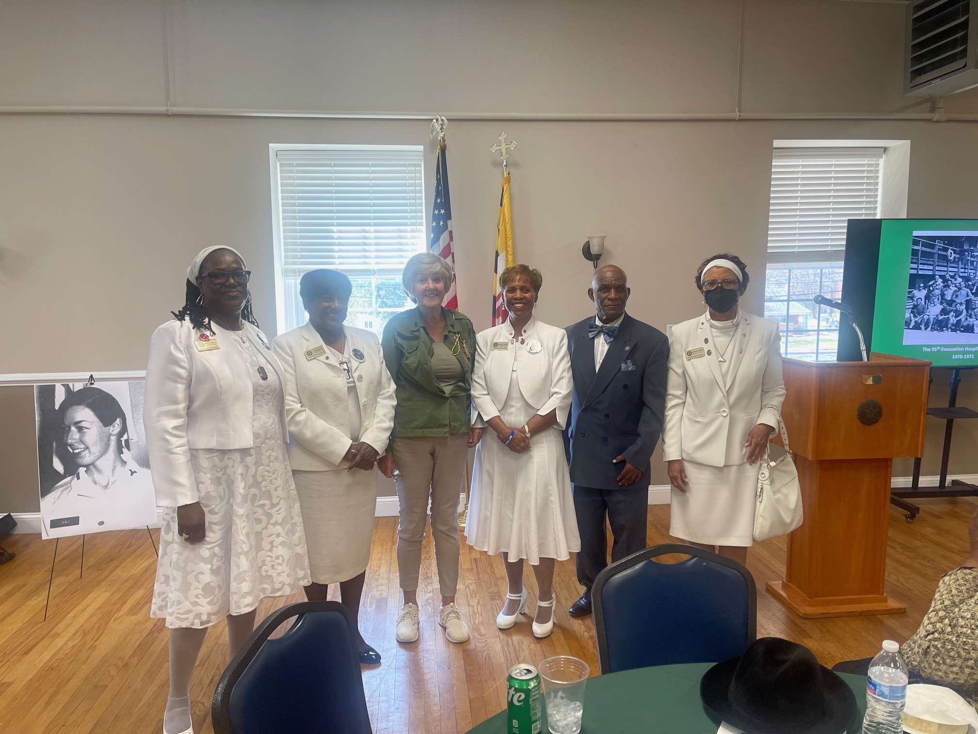 Maryland Gold Star Mothers, Stephanie White, Janice Chance, Paula Davis, and Donna Robinson attended the Vietnam War Veterans Day event that was sponsored by American Legion Post 39 in Bel Air Maryland. Patriotic Music was performed by The Maryland Military Band. There was a presentation about female Vietnam Veterans who were nurses. Their pictures were prominently displayed by the podium. Unfortunately, the 8 nurses died while performing their medical duties during the Vietnam War. The keynote speaker was Dr. Jane McCarthy who served as a nurse during the Vietnam War. She gave a compelling speech about her Military Service. After the playing of TAPS/Retirement of Colors, there was a Champagne Toast to Veterans, Families, and POW/MIA. The Moms enjoyed the fellowship with members of American Legion Post #39 and felt honored to be part of this event.