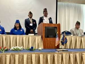 On Monday, May 27, 2024, Gold Star Mothers and Fathers, families, and the community were invited to attend the Annual Memorial Day ceremony at Dulaney Valley Memorial Gardens. Janice Chance, Marie Moudry, Mary Wiley, and Stephanie White represented the Maryland Gold Star Mothers Maryland Chapter. Gold Star Mother Mrs. Stephanie White, Mother of Private First-Class Robert Leon White, EOW 7/29/02, provided a memorial address briefly sharing about her family’s hero. Governor Wes Moore gave the Memorial Address. Other participants included keynote speaker, Colonel Louis P. Hawkins, Commander 29th Expeditionary Combat Brigade National Guard. Music was provided by the 229th Army Band, Dundalk Sweet Adelines, and bagpiper Robert McCurdy. The opening procession included the Maryland National Guard Honor Guard Color Team, 4th Combat Engineer Battalion USMCR, Historic Elkridge Young Marines, Nam Knights of America Motorcycle Club, and the Knights of Columbus O’Neill Council #4011. Alan Walden served as MC. Families of those killed in action since last Memorial Day were presented with a replica of the memorial which depicts a woman embracing a folded flag. Those honored were: A1C Russell Griffith, A1C Makai Cummings, Capt. John Stevens, Spc Izaiah Sneed, SA Juan Soriano, SPC Edgar Allen, SSGT Lacy O’Neill, and Po1 Christopher Chambers. Marie Moudry accepted on behalf of the Griffith family. Janice Chance accepted a plaque on behalf of the Allen family. Janice did 3 media interviews for FOX 45 Television. Janice, Marie, Stephanie and Mary were blessed to meet and provide comfort to the families and friends of those honored this year. They also met with many veterans and active-duty service members and their families. It was a truly beautiful and moving ceremony.