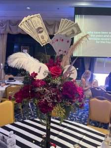 On September 28, 2024, Maryland Chapter Gold Star Moms Donna Robinson, Paula Davis, Janice Chance, Stephanie White and their guests attended the AUSA 20th Annual Fisher House Gala fundraiser. It was held at Water’s Edge Event Center in Belcamp, MD. The first gala was held at Fort Monmouth, New Jersey, with which over 360 guests attended. On behalf of the Major General (MG) Harry Greene Chapter, Bob Gutjahr, President welcomed everyone to the Gala. Since 2004, the Monmouth and Aberdeen Communities have staged this event in support of the Fisher House Foundation. The Foundation raises funds that enables comfort homes to be built that are placed near major military and VA medical centers. There are currently 99 Fisher Homes, almost reaching a goal of 100 homes. Since its inception, the Foundation has saved military and veteran’s families an estimated $525 million in out-of-pocket costs for lodging and transportation for military and veteran’s families. Families stay at no cost while a loved one is receiving critical care. There were 54 sponsors for the event this evening. The AUSA Fundraiser committee selected “The Roaring 20’s” as their theme this year; therefore, many of the attendees wore attire from the 20’s decade. Guests also feasted on different foods that would be found from that era as well as many finger foods and desserts. Guests were also entertained with great music. An auction was held along with raffle drawings for 19 Gift Baskets. The Maryland Gold Star Mothers Chapter donated two beautiful gift baskets. The two baskets were a “Party like Gatsby Theme” Auction basket with a monetary value of $375.00 and “Fall Coziness” Auction basket with a monetary value of $300.00 created by Maryland Gold Star Mother, Lauren Seidler. Attending the fundraiser was a wonderful way to support our heroes and their families. Next year’s Fisher House Fundraiser event will be held on September 20, 2025 with a “Red White & Blue BBQ” theme.
