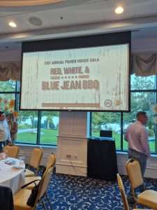 The AUSA Fundraiser committee selected “Red White and Blue Jean BBQ” as their theme this year; therefore, many of the attendees wore Western Cowboy attire. Guests also feasted on different foods that included delicious barbeque dishes from around the world as well as many finger foods and desserts. Guests were also entertained with great music. An auction was held along with raffle drawings for 35 Gift Baskets. The Maryland Gold Star Mothers Chapter donated two beautiful gift baskets. The two baskets were a “Stars and Stripes” Theme auction basket with a monetary value of $330 and a “Red White and Ready” Theme auction basket with a monetary value of $110 which were created by Maryland Gold Star Mothers, Julie El-Taher and Theresa Karlson. Attending the fundraiser was a wonderful way to support our Heroes and their families. Next year’s Fisher House Fundraiser event will be held on September 19, 2026 with a “Midnight in the Emerald City” theme.