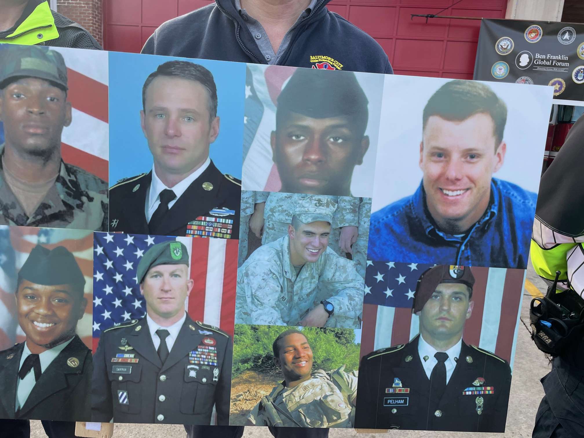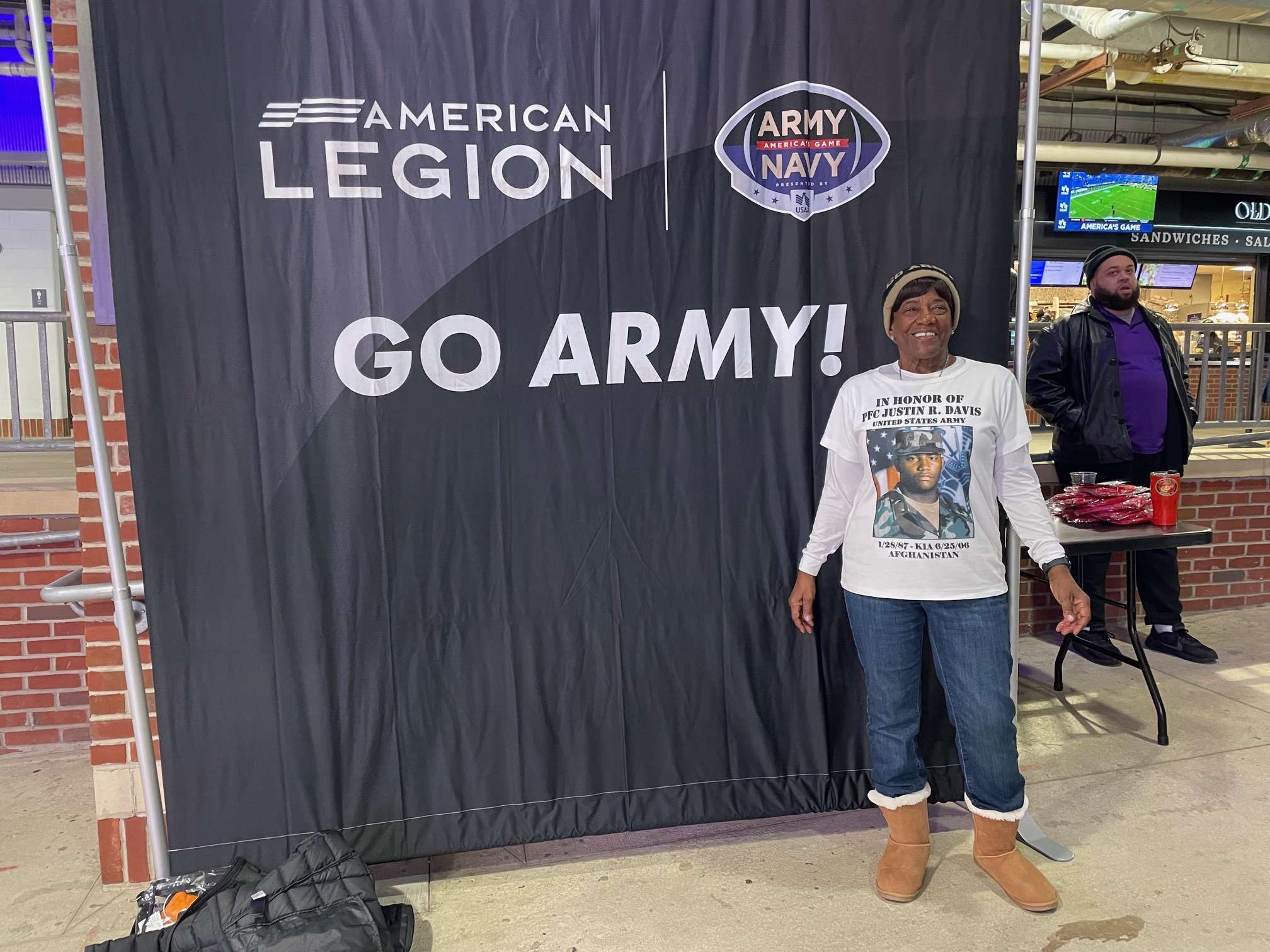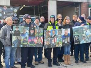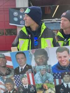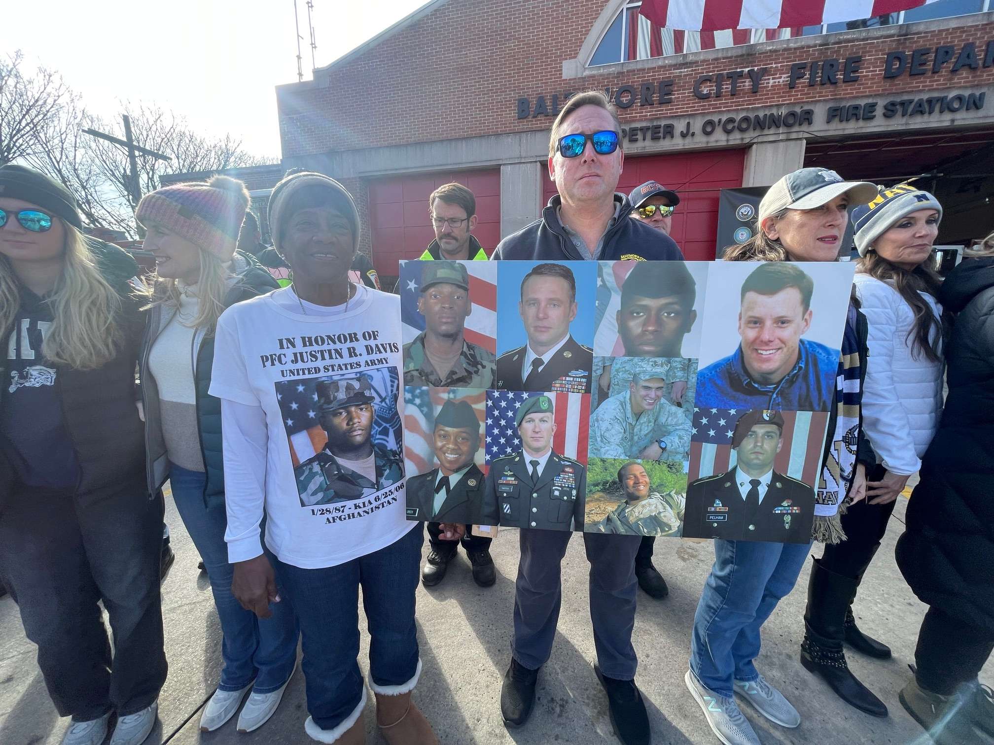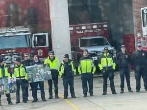 On Saturday morning, December 13, Gold Star Families, their escorts, and invited dignitaries assembled in the hotel lobby for a Maryland State Police–escorted executive coach bus ride. The procession traveled first to the Forum’s Honor Stop at the Locust Point Fire Station and then continued to M&T Bank Stadium. At the Honor Stop, Gold Star Families were recognized by firefighters standing outside the firehouse holding posters bearing photos of their fallen loved ones. A brief ceremony was held before the escorted ride proceeded to the stadium.