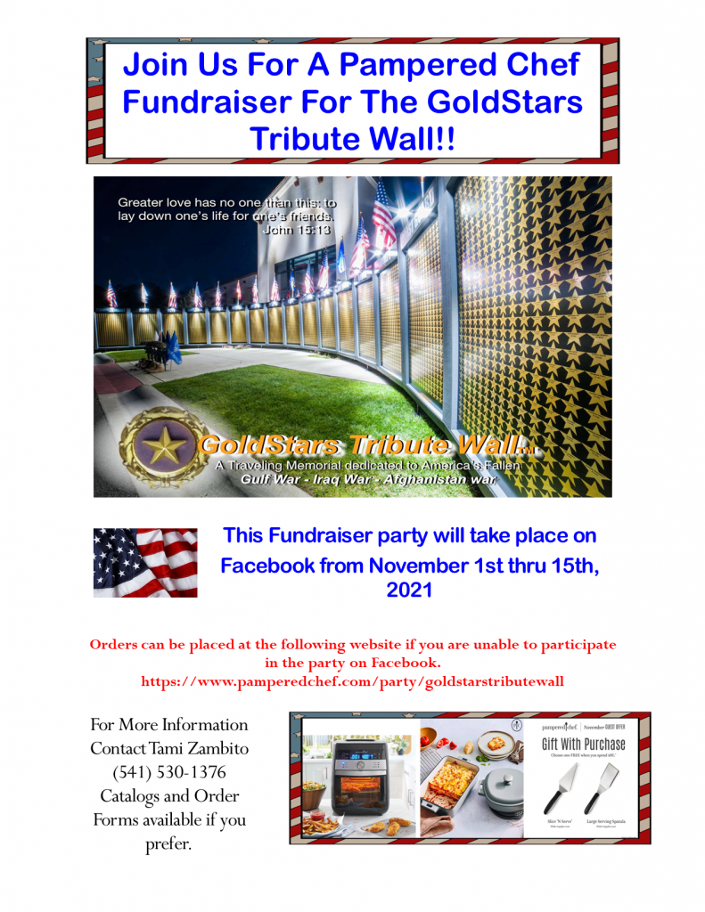 GoldStars Tribute Wall will be having a Pampered Chef Fundraiser from November 1st – 15th.