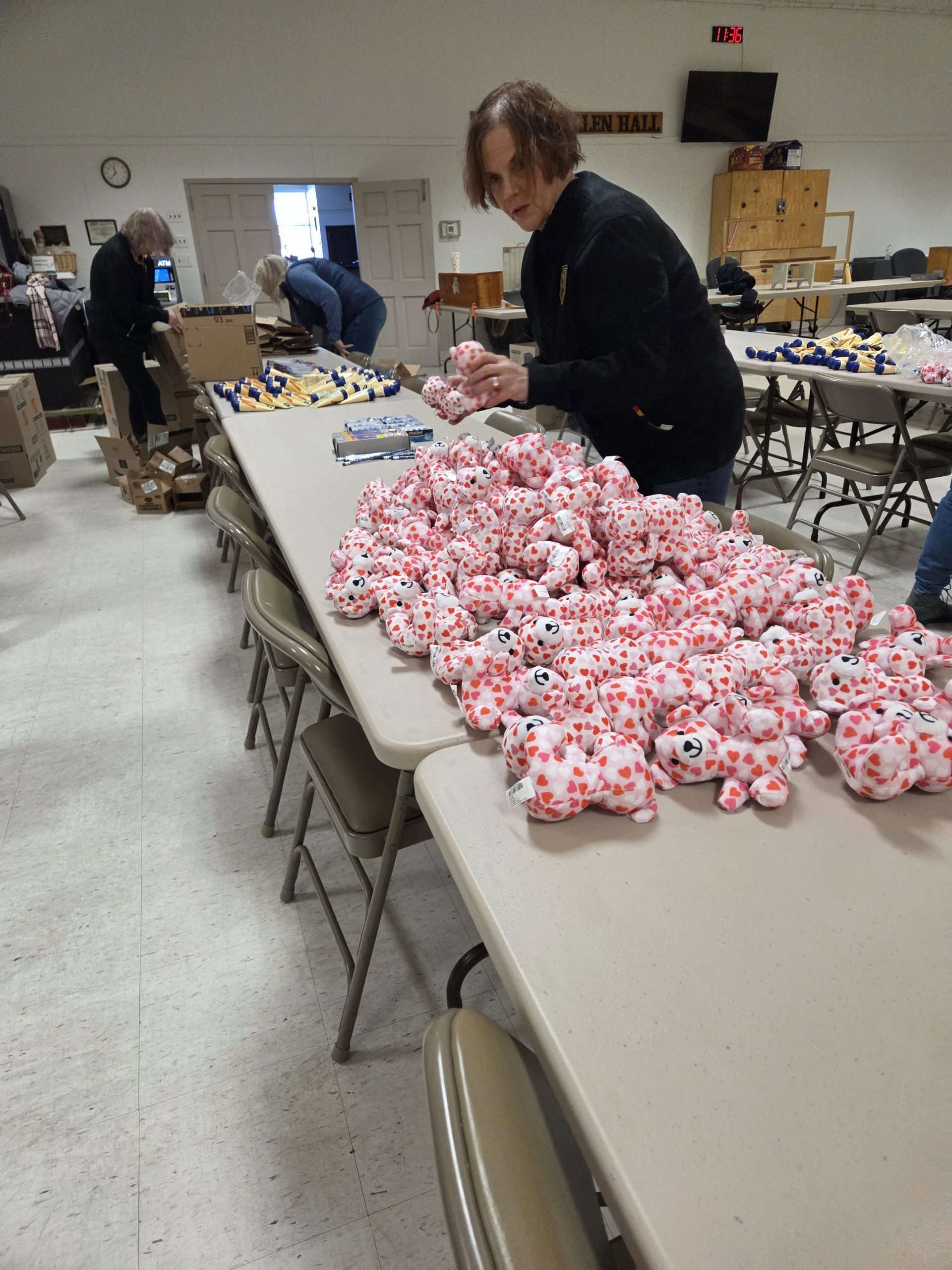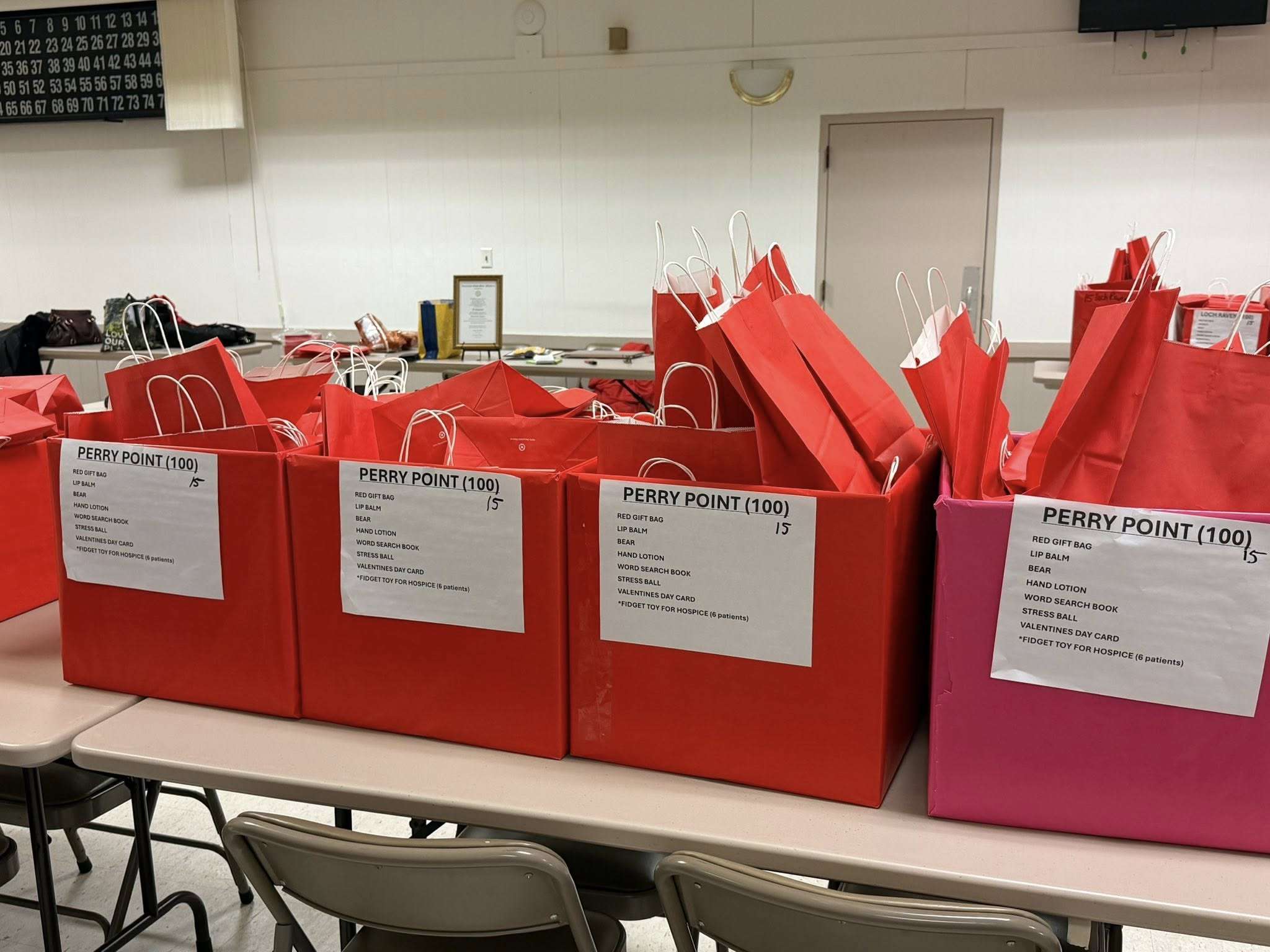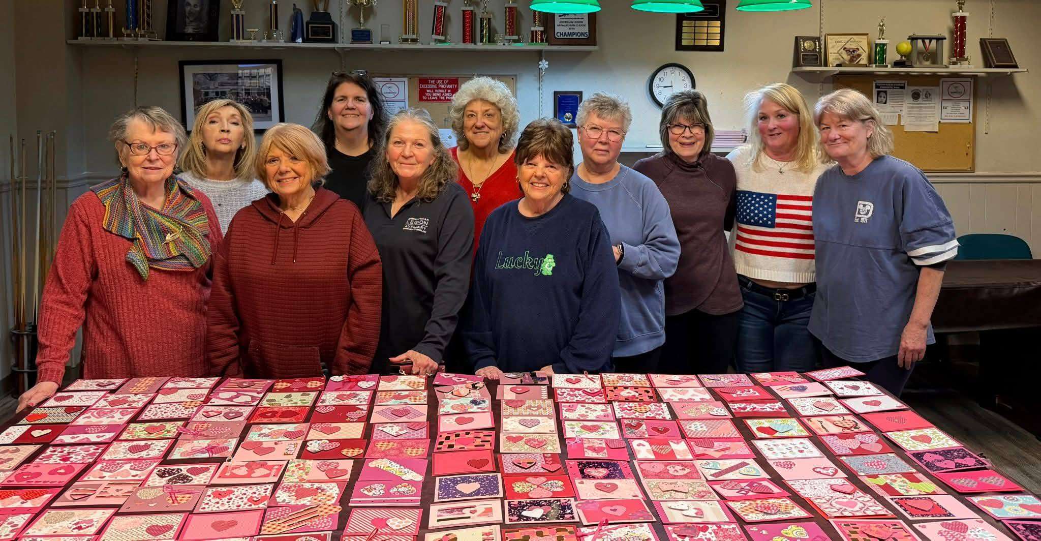 Gift bags included word puzzle books, pencils, lip balm, hand lotion, stress balls, stuffed bears and handmade Valentines Day cards that were crafted by members of the Auxiliary.