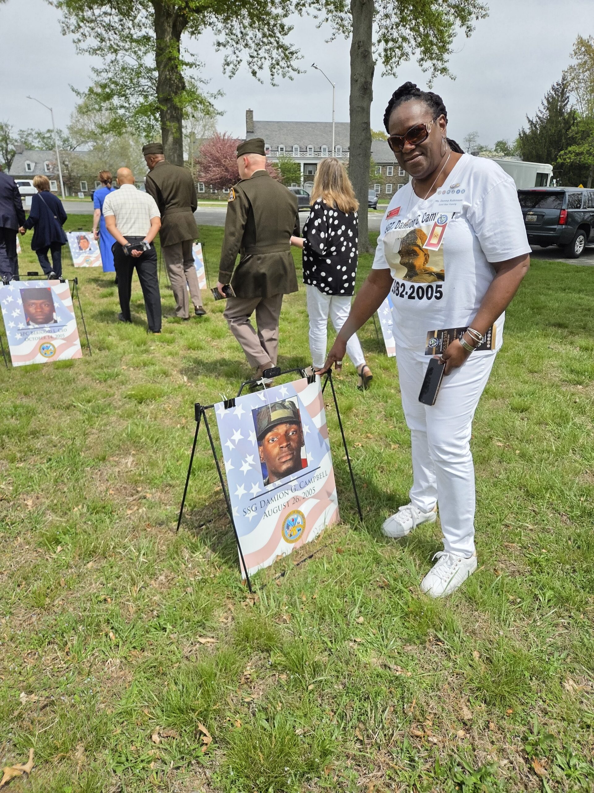 On April 18, 2026, the Maryland Gold Star Mothers were invited by Mr. Michael Farlow, to attend a special event organized for Gold Star Mothers and Family Day at Aberdeen Proving Ground located in Harford County, Maryland. Maryland Chapter Moms, Theresa Karlson, Donna Robinson, and Stephanie White along with her grandson, Curtis Bailey attended. The event was held at the beautiful Living Legacy Forest with remarks from MG James D. Turinetti IV, and L. Edmonson II. This was followed by a Stone Dedication Presentation for Major George Leslie Horsman II. His family members were in attendance. Following the Stone Dedication, we listened to remarks from Command Sergeant Major Jay A. High. Afterward, we attended a backyard BBQ style reception. Theresa Karlson and Stephanie White won lovely gift baskets. It was a wonderful event and we are so thankful for the support that we receive from Aberdeen Proving Ground and Mr. Michael B. Farlow, Army Community Service Program Manager, Survivor Outreach Services.