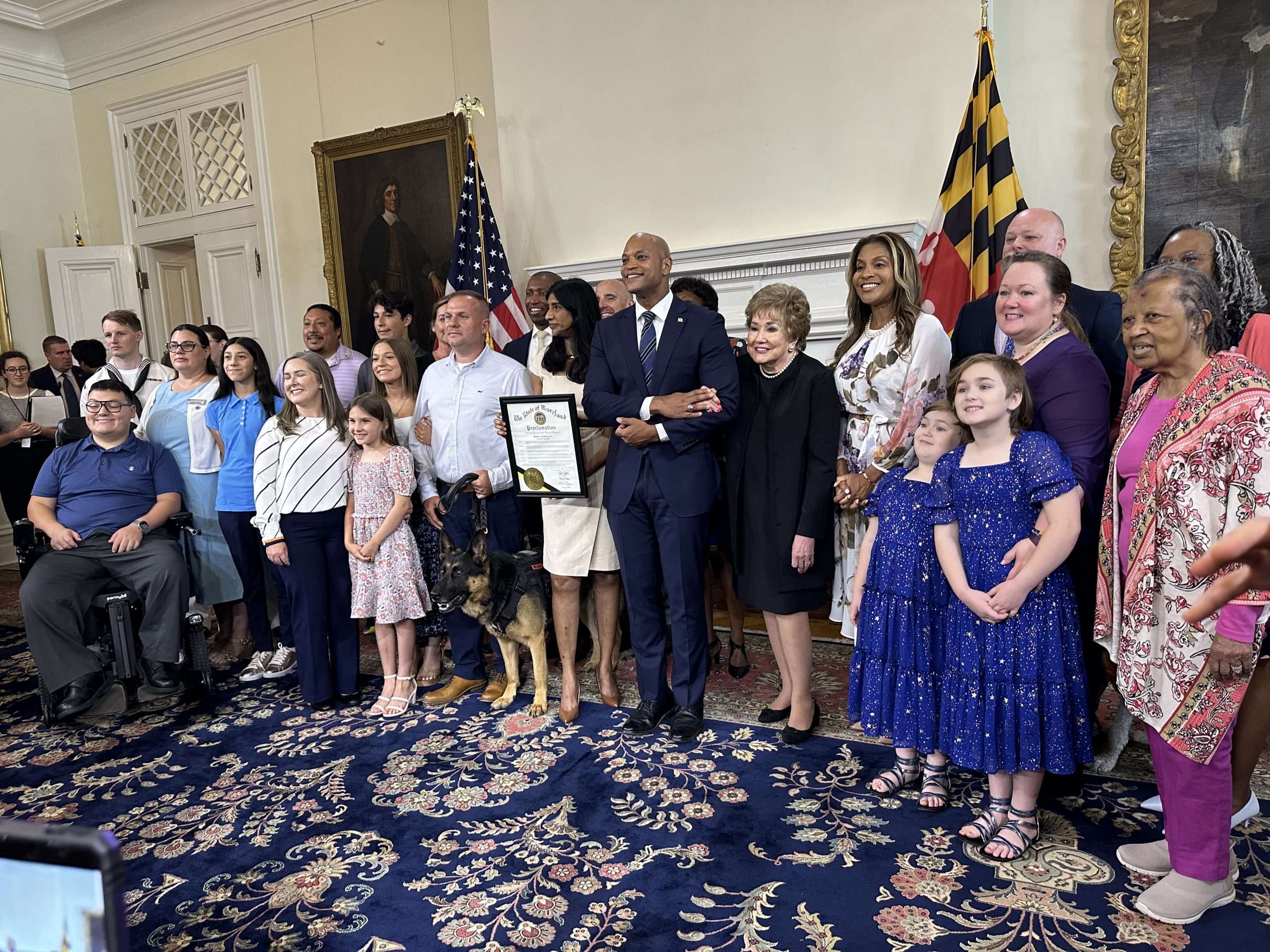 On August 6, 2024, Maryland became a Hidden Heroes State, proclaiming its support for veteran and military caregivers. Senator Elizabeth Dole was present when Governor Wes Moore signed Maryland up to be a Hidden Heroes State in partnership with the Elizabeth Dole Foundation. Maryland Gold Star Mothers Janice Chance and Stephanie White and representatives from The Travis Manion Foundation attended the event that took place in the Governor’s Reception Room, at The Maryland State House. Governor Moore spoke and additional remarks were provided by Maryland First Lady, Dawn Moore, Lieutenant Governor Aruna Miller, Secretary of Veterans and Military Families Anthony Woods, and The Elizabeth Dole Foundation CEO Steve Schwab.