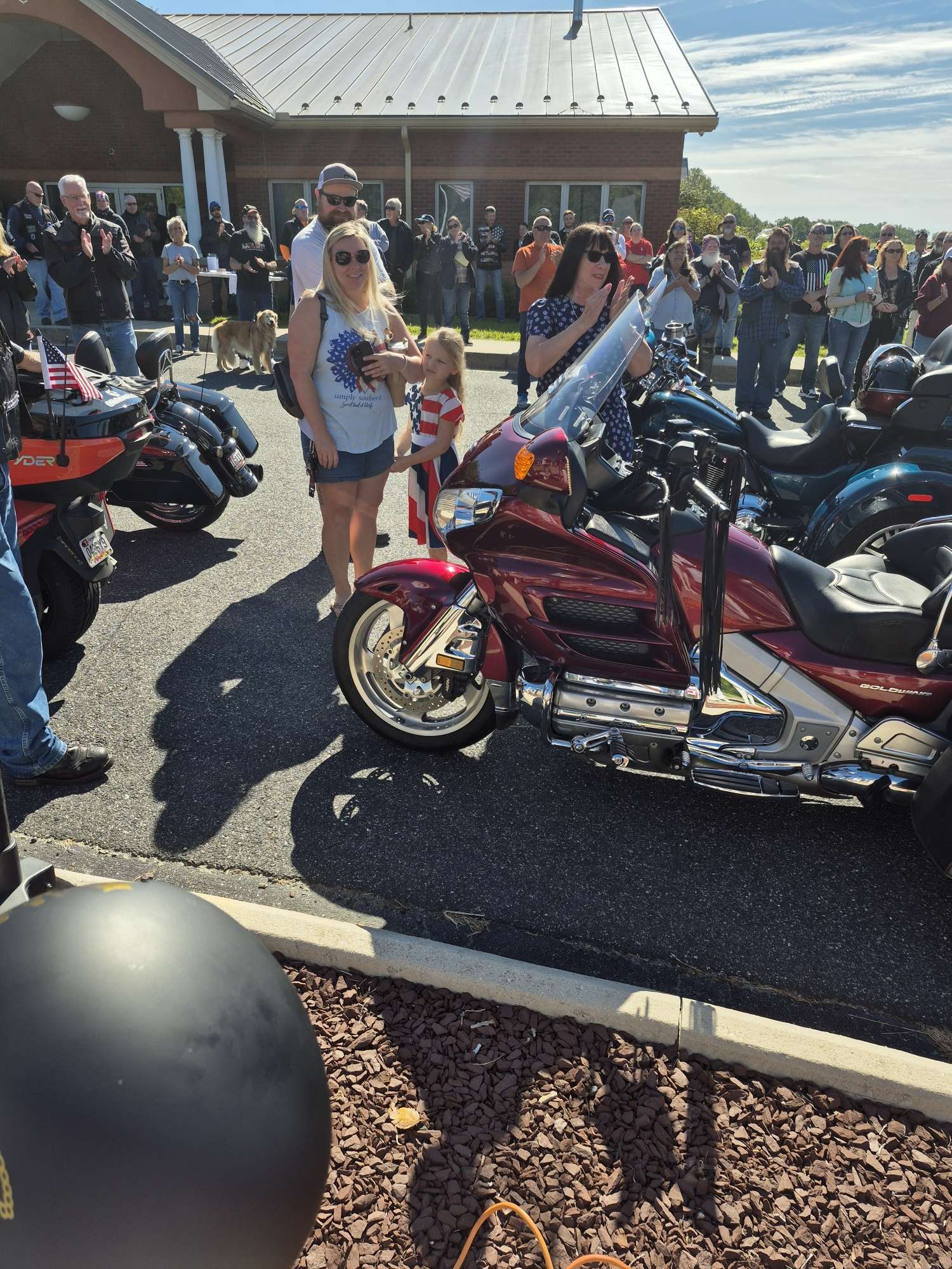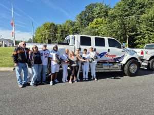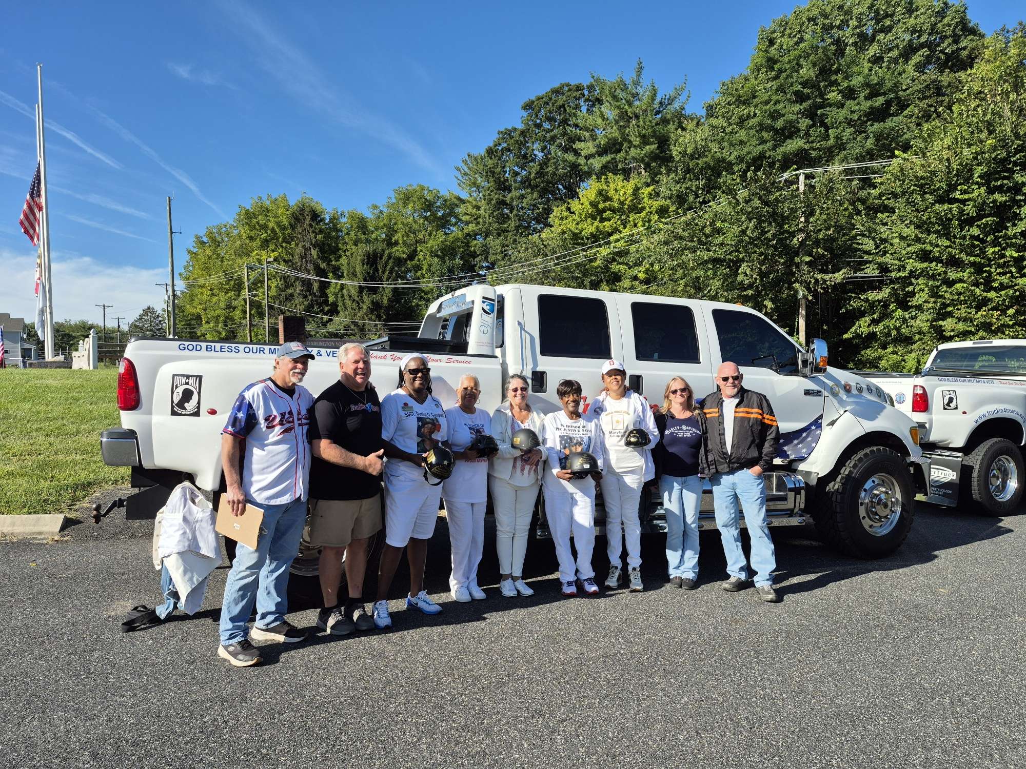 Mother Nature smiled once more for this annual event. Every year, Chuck Ritz, founder of the Hope and Peace Foundation, invites the Maryland Gold Star Mothers to be Honorary Ride Captains. Maryland Gold Star Mothers Donna Robinson, Yvonne Green, Paula Davis, Joy Goode, Geraldine Pepper and Gloria Crothers with Jimmy Scarborough participated this year. Scott and Lynne Mallary, owners of Truckin4Troops, made sure the Moms and Gold Star Dad, Garry Green, arrived safely to the Darlington Volunteer Fire Station where the ride began. Before the riders put up their kick stands, 5-year-old Ms. Devon recited the Pledge of Allegiance. This year the ride brought over 550 riders from Maryland, Virginia, Pennsylvania, Delaware, and New Jersey. Gold Star Mothers were proud to attend this honorable event and we will never forget the sacrifices of those who the Nation lost that fateful day on September 11, 2001.