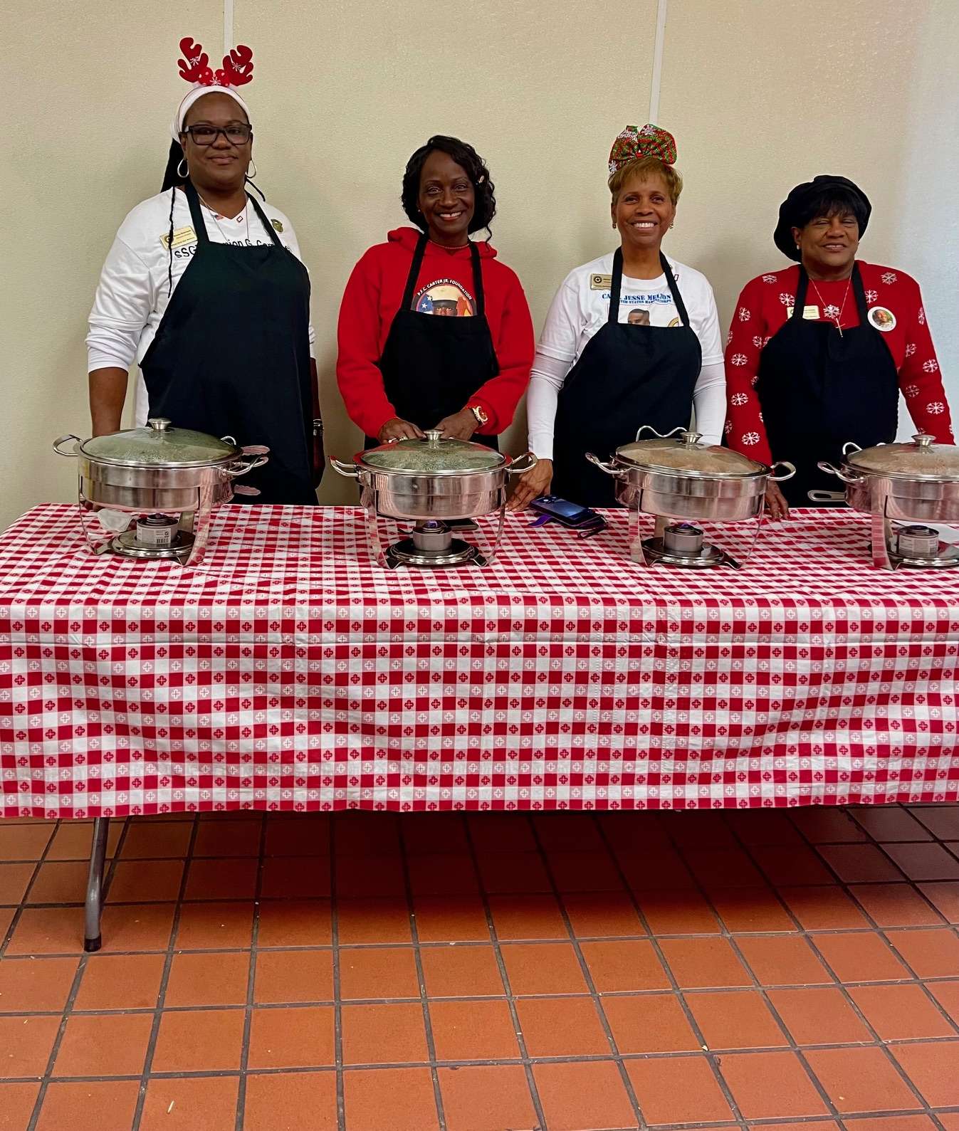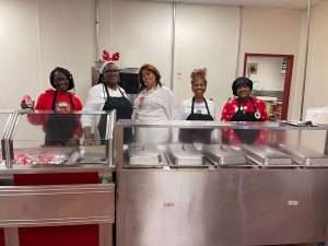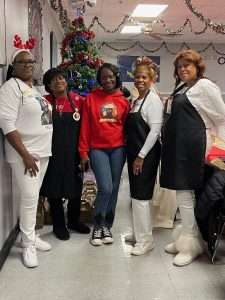 Gold Star Mothers – Maryland Chapter was invited by the Maryland Center for Veterans Education and Training (MCVET) Homeless Shelter leadership team once again to serve as volunteers at their annual MCVET’s Holiday dinner. Gold Star Moms, Sandra Johnson-Carter, Janice Chance, Paula Davis, Joy Goode and Donna Robinson represented the Maryland Chapter. The moms served alongside the MCVET staff and other Organizations. The event started with a welcome and thank you remarks from Misty L. Bruce, Executive Director – MCVET. Her remarks included words of encouragement to the residents and gave special thanks to the MCVET Staff and supporters. One of the former MCVET graduates gave a heartwarming message of encouragement and congratulations to his fellow veterans for their commitment to completing the program. The residents received a variety of gifts from the Organizations that were in attendance. The dining hall was beautifully decorated. During the remarks, the Gold Star Mothers presented a $1,000 donation check to MCVET and gift cards for their female residents.