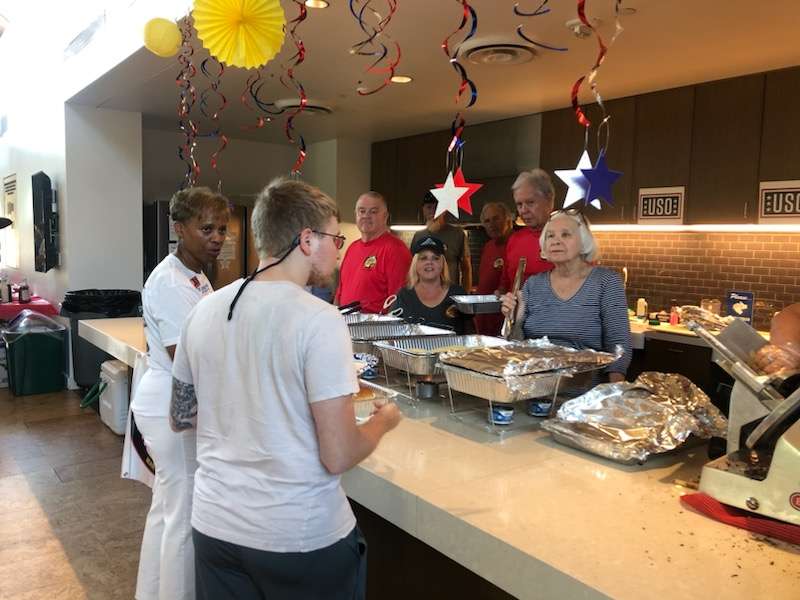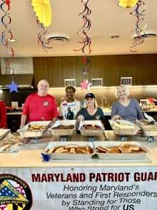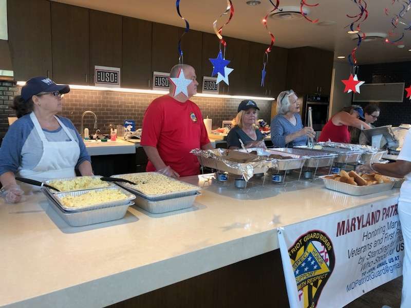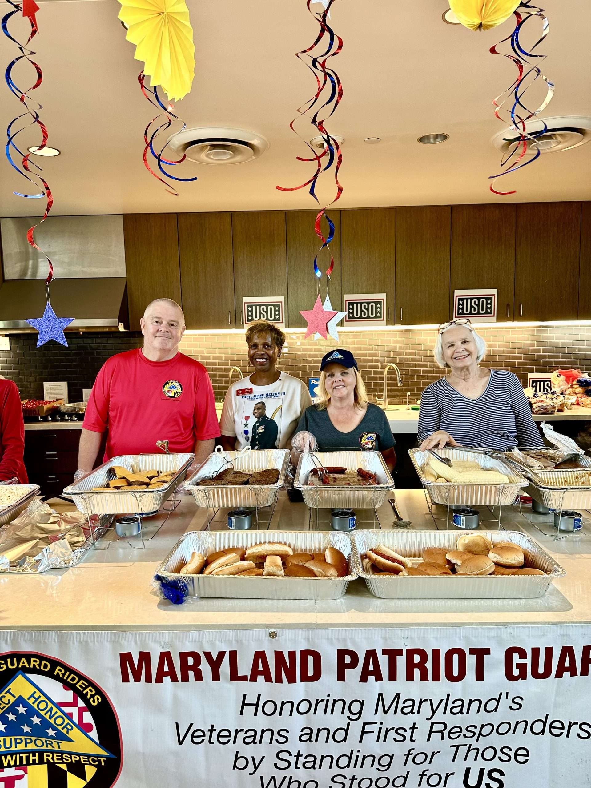 The Maryland Patriot Guard (MDPG) leaders Ann and Ted Nettles, invited MD Chapter Gold Star Mothers and other individuals to volunteer at their Annual BBQ. Janice Chance represented the MD Chapter. She joined the Maryland Patriot Guard (MDPG) leaders Ted, MDPG members and other patriots in serving our wounded warriors, active duty service members and their families at the Walter Reed Medical Center USO facility. The volunteers worked together well as a team throughout the event. There was plenty of good food and wonderful fellowship. The volunteers received many “thank you’s” from our Heroes, USO staff, and other civilian employees. There was much laughter and smiles on the faces of our heroes and their children. Ann Nettles estimated that there were about 120 individuals in attendance. As always it was an honor to meet, serve, and thank some of our nation’s Heroes and their families.