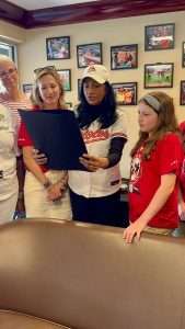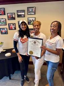 Dana Burl, Deputy Secretary, Military Family Policy and Programs, Maryland Dept. of Veterans and Military Families, extended an invitation to the American Gold Star Mothers Maryland Chapter to attend the Orioles Baseball Game at Camden Yards on May 26, 2025. Gold Star Mothers Janice Chance, Donna Robinson, Stephanie White, and their guests including Gold Star sibling Jenine Melton, who is the Charles County Veterans Affairs Commissioner were at the game. Everyone enjoyed the great fellowship, delicious catered food in the Governor’s suite. Lt. Governor Aruna Miller stopped by the suite to visit with the Gold Star Mothers. Fortunately, the Orioles won the game against the St. Louis Cardinals with the score being Orioles 5 and Cardinals 2.