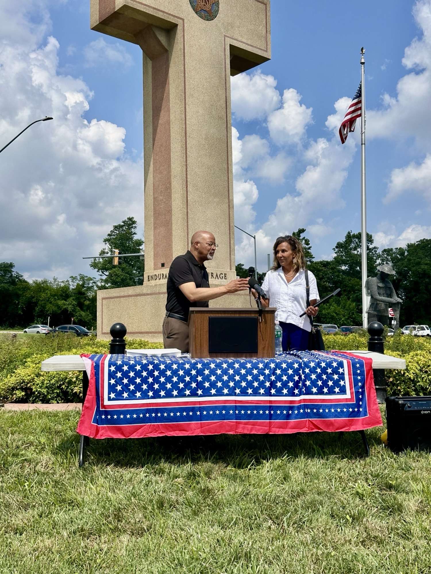 Maryland Gold Star Mothers Paula Davis, Janice Chance, Donna Robinson, Stephanie White, Yvonne Green, and Gold Star Dad, Gary Green attended The Peace Cross 100th Anniversary Ceremony on July 12, 2025 in Bladensburg, Maryland. Renee Green, The Executive Producer of Save the Peace Cross Documentary, provided the welcome address and opening remarks. There were many veterans as well as members of The American Legions and The VFW organizations who attended the event. Elected Officials including Maryland State Senator Augustine, Prince George’s County Executive Aisha Braveboy, Congressman Glen Ivey and At-large Prince George’s Council Member Jolene Ivey, were among the speakers at the event. Gold Star Mother, First VP and Chaplain Janice Chance did the invocation.
