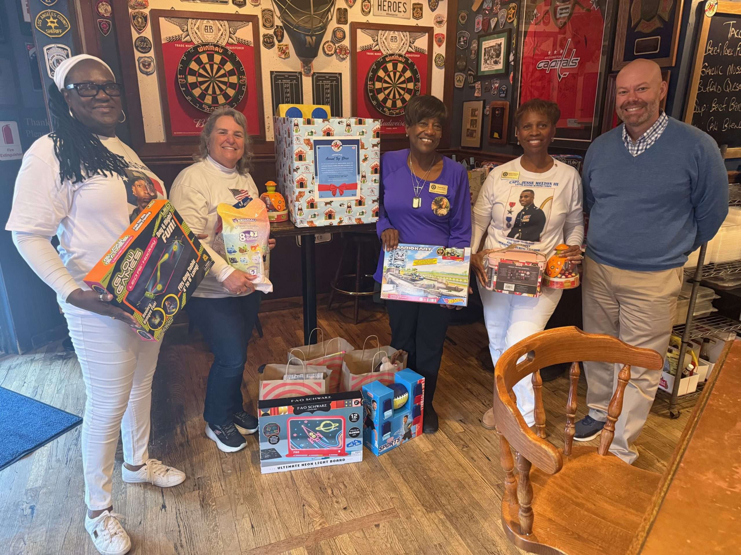 After wrapping up their shopping, the moms delivered the toys to Heroes Pub in Annapolis, one of the drive’s drop-off locations. To their great surprise and gratitude, Warrior Events Mark Humphries treated them to lunch at the restaurant. Special thanks go to @Warrior Events and beloved friend, Bob Saunders, for bringing everyone together and supporting this effort.