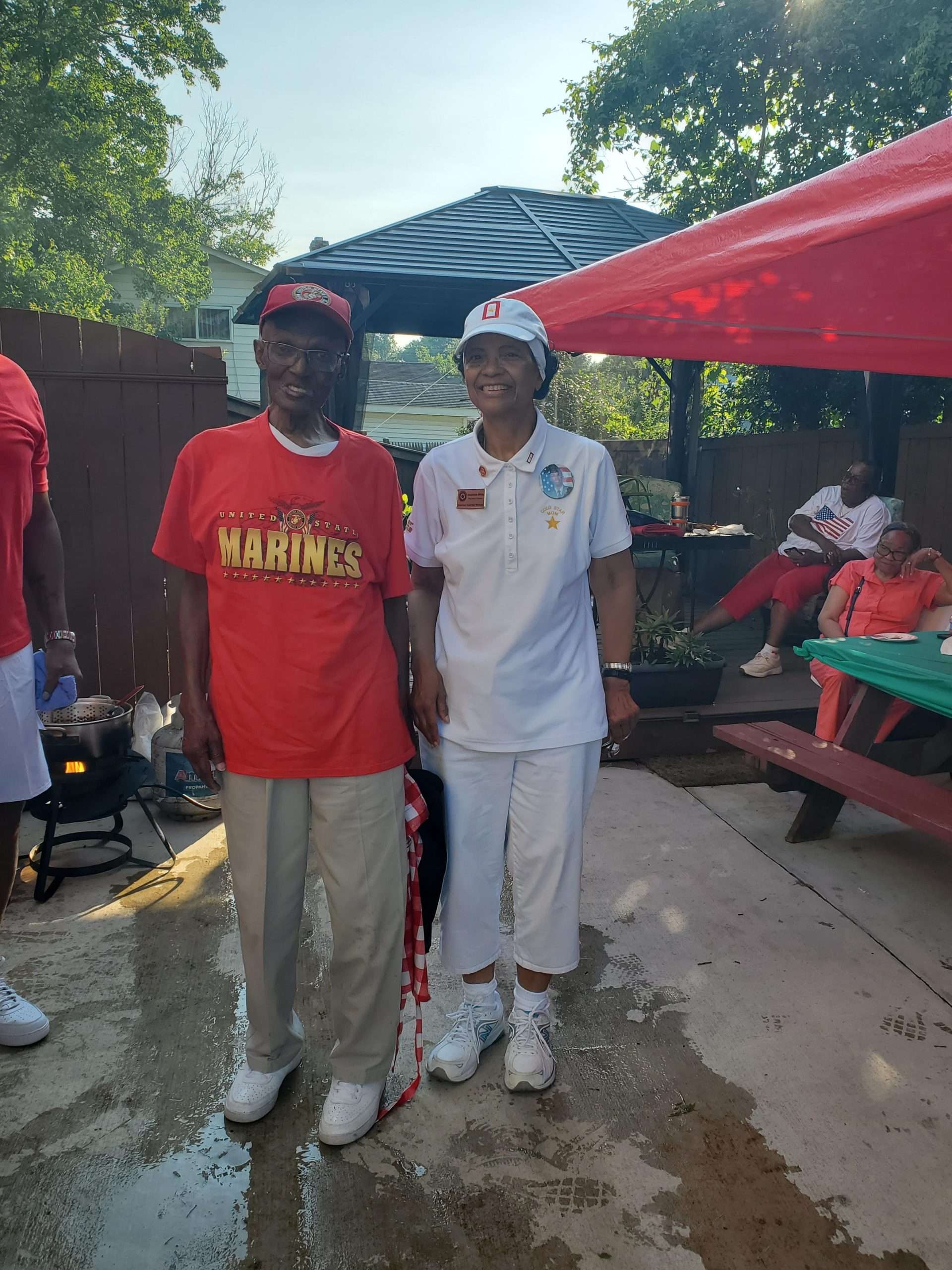 On July 4, 2025, Maryland Gold Star Mother Chapter Secretary, Stephanie White, was very honored to present Mr. Clarence Lewis, a Vietnam Veteran with one of the Maryland Chapter’s Vietnam 50th Anniversary Chapter Challenge Coins, a Veterans pin, and other Marine Corp Memorabilia, to remind Clarence that his military service will never be forgotten. Clarence served in the US Marine Corp from August 1967 to February 1969. His rank was Corporal. The jobs that he performed in the Marine Corp were Infantry, Machine Gunner and Flame Thrower. He received the National Defense Service Medal, The Vietnam Service Medal, The Vietnam Campaign Medal and The Sharpe Shooter Rifle Badge. His three sons, Clarence Lewis III, Jamier Fowlkes, RoShaud Lewis and wife Lillie Lewis were very proud that Clarence received special recognition for his Vietnam Military Service. This special event also included Clarence’s birthday celebration.