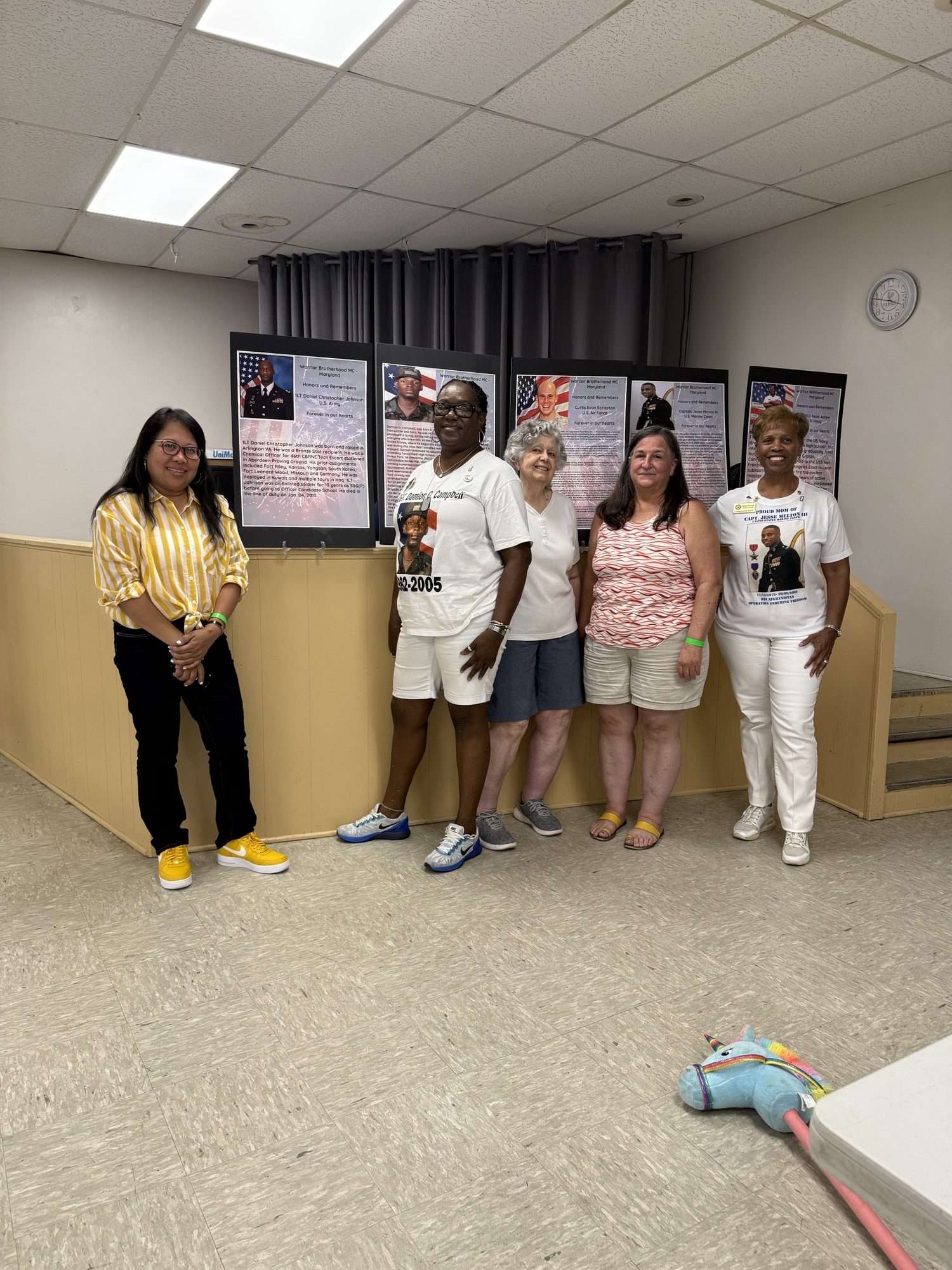 The WBMC displayed posters of each fallen hero that included their picture and information about them. The President, Sid Sakota, AKA Ghost, gave remarks honoring the heroes and Gold Star family members. Janice shared about the Gold Star Mothers organization and expressed thanks on behalf of the Maryland Chapter moms. Each family member spoke to the audience about their fallen hero. The following heroes were honored: Capt. Jesse Melton III, USMC, Gold Star Maryland Chapter mother Janice Chance and Stepfather Charlton Chance; SSgt Damion Campbell, US Army, Gold Star mother Donna Robinson; FT2 SS Keon A. Askew U.S Navy, Gold Star mother Joyce Goode; 1st Lieutenant Daniel Johnson, Gold Star Spouse Carmelita Johnson and son Phillip; TSgt Curtis Evan Eccleston, U.S. Air Force, Gold Star Aunt Sharon Loving and Gold Star grandmother Nancy Smith. The VFW provided a delicious BBQ meal. During the meal, the Gold Star moms seized the opportunity to meet and fellowship with the riders and other guests. The WBMC riders plan to honor fallen heroes annually. It was a wonderful event.