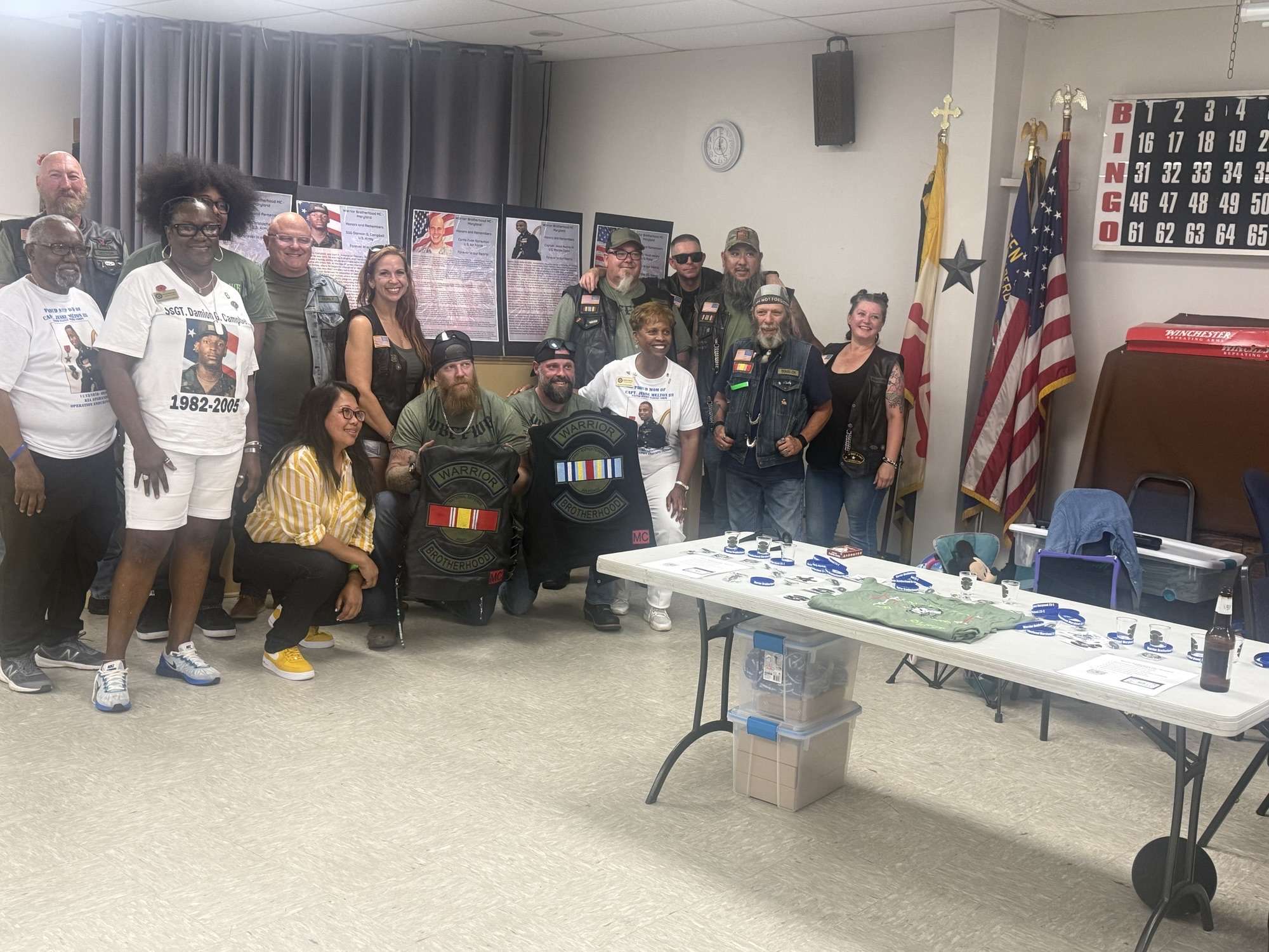 The Maryland Chapter of the Warrior Brotherhood Motorcycle Club (WBMC) held their 1st Poker Run fundraiser to honor five fallen veterans from Maryland. Their mission was to raise money to support their fellow veterans and to Honor selected Gold Star family members and their fallen hero. The ride started and ended at the VFW Aberdeen Post # 10028 located in Aberdeen, Maryland. Gold Star son Phillip Johnson accompanied the WBMC on their ride.
