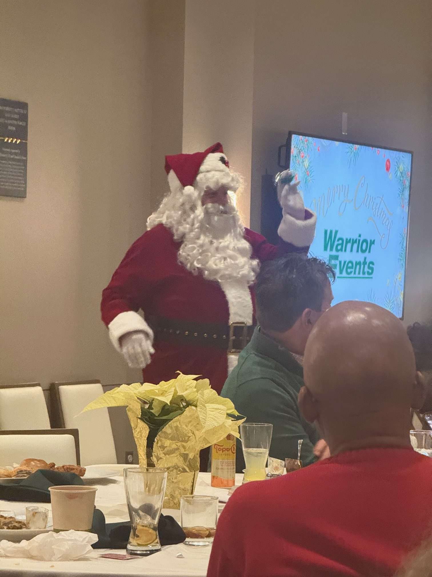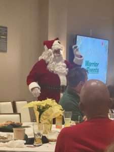 Gold Star families and their guests were treated to a delicious meal and festive music provided by a DJ. The evening truly felt magical with entertainment by Magician Randy Forster, delighting both children and adults alike. Each child also received a special gift from Santa, bringing smiles and joy to all.