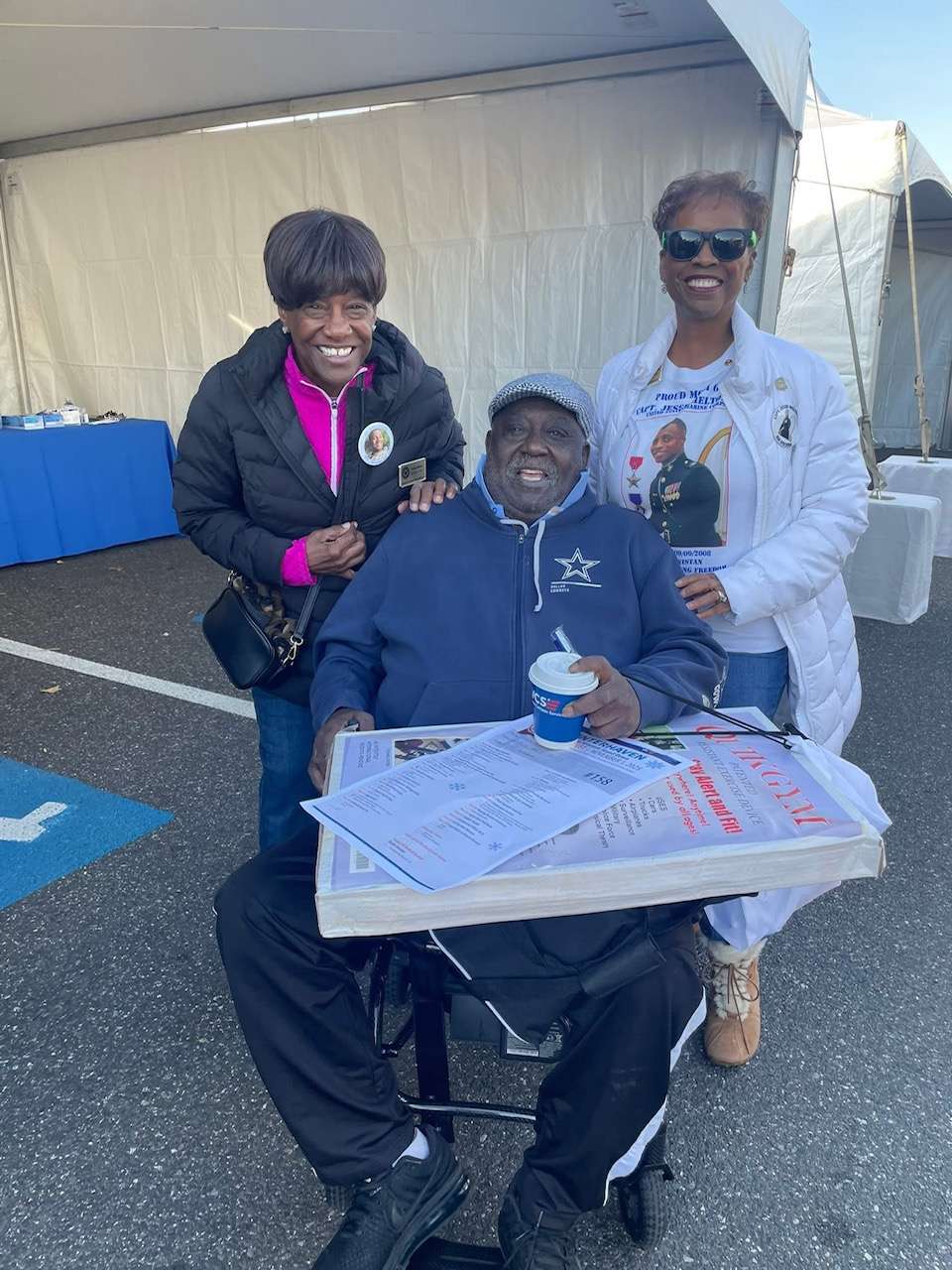 The annual Winterhaven Homeless Veterans Stand Down was hosted at the Washington, DC VA Medical Center. The day-long event brought together VA employees, volunteers, and community partners to offer immediate assistance, services, and resources to unsheltered and at-risk Veterans throughout the District of Columbia, Northern Virginia, and areas of Maryland. Gold Star Mothers Janice Chance and Paula Davis volunteered and handed out coffee, tea, breakfast sandwiches, and donuts to the Veterans who stood in line waiting to go inside the event.  They also helped serve lunch to the Veterans.
