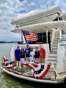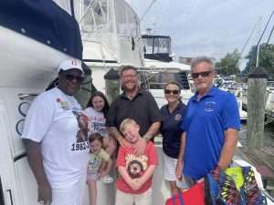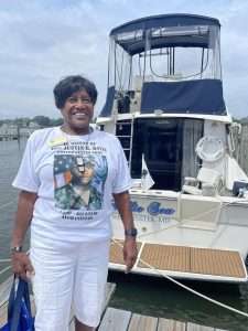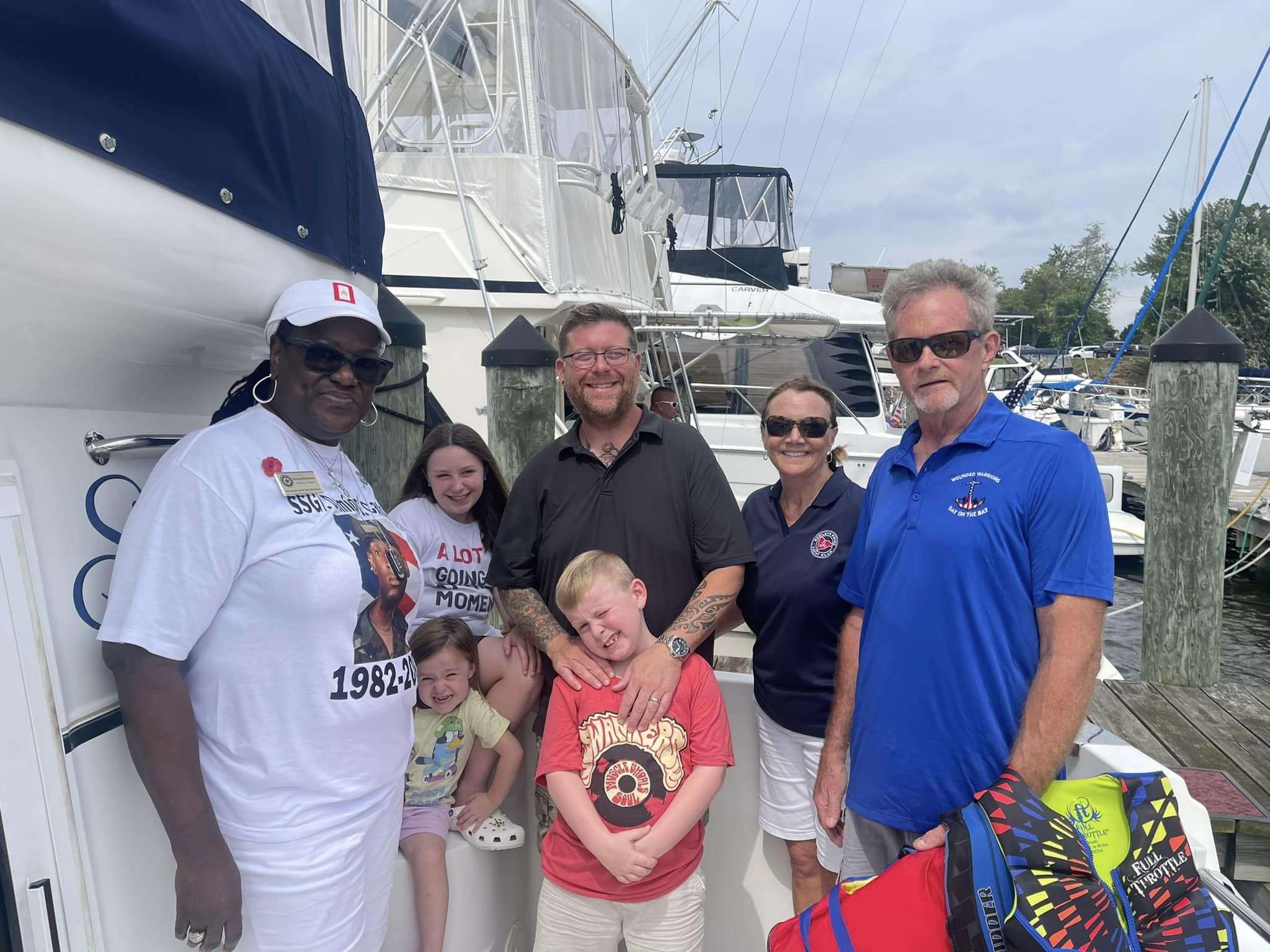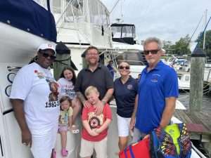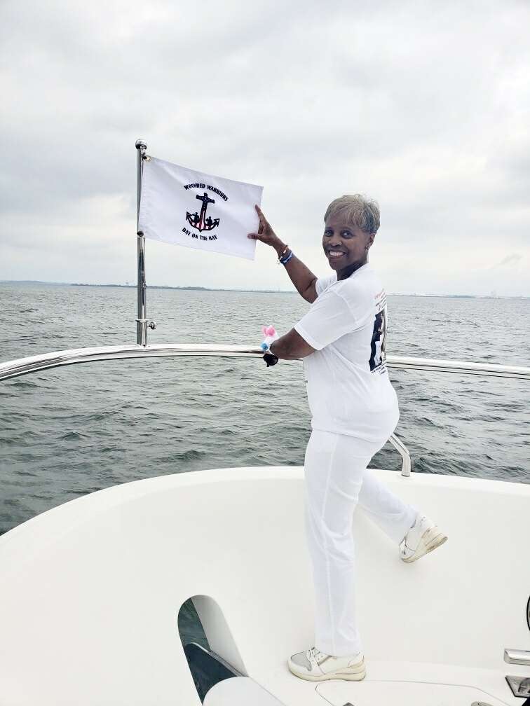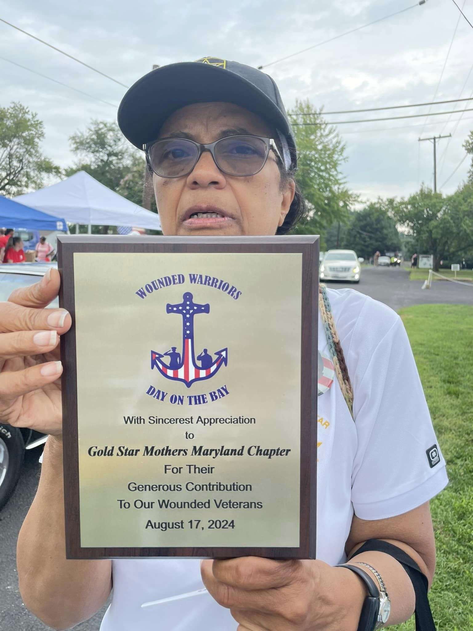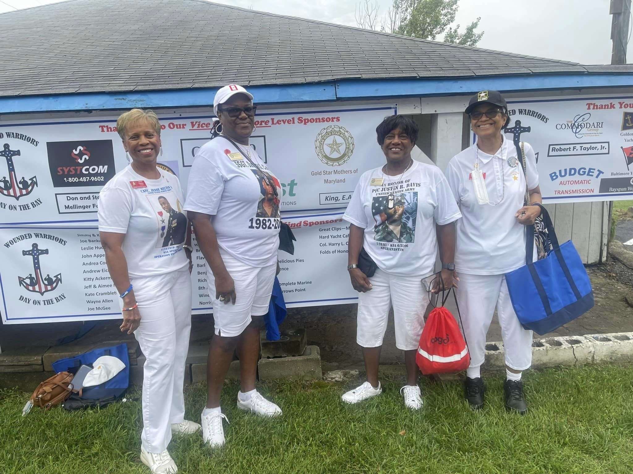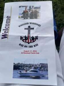 Gold Star Mothers Maryland Chapter members were invited by Mr. Mark Fitzpatrick, Co-Chair of the Sponsor Committee, Wounded Warriors on The Bay Day to attend and participate in their 12th Annual Wounded Warriors Day on The Bay event (WWDOTB). The purpose of the event is to provide a Stress-free Day on the Chesapeake Bay for Wounded Warriors (WW) and their families. Janice Chance, Stephanie White, Donna Robinson, and Paula Davis represented the Maryland Gold Star Mothers Chapter. There were approximately 200 people who attended this event, including wounded warriors and their families, Vietnam Veterans, Captains, and volunteers. A special recognition and appreciation ceremony was held for the Wounded Warriors. The ceremony was opened with the presentation of Colors. Katlyn Mitchell sang the National Anthem, and Brigadier General Reid Novotny, was the guest speaker. The Maryland Gold Star Mothers helped to present “Thank you for Your Service” plaques to the Wounded Warriors, who also received a challenge coin, an insulated cooler thermal bag, a gift card and several other gifts. The Gold Star moms also received recognition during the ceremony. The children received school backpacks filled with supplies and they were also treated to a variety of activities. Immediately after the ceremony, the WWs and their families and Gold Star moms were introduced to their assigned yacht Captain owner who would take them out on the Bay after lunch, which was provided by Mission BBQ. Gold Star moms were honored to join a WW and their family on the cruise. Yacht owners, who are members of several local yacht clubs, provided informative stories about the different landmarks as they toured the Bay into the Baltimore Harbor and back to the Maryland Yacht Club. They volunteered their resources, time, and vessels. Once the heroes and Gold Star moms returned from their cruise, they were treated to a feast that included steamed crabs, a variety of foods, and beverages which was provided by McKinney’s Catering. WWs were also given a raffle ticket as several donated items were raffled off. The fellowship was wonderful, the food was delicious, and the weather was delightful. The evening ended with TAPS . It was a GREAT DAY ON THE BAY!