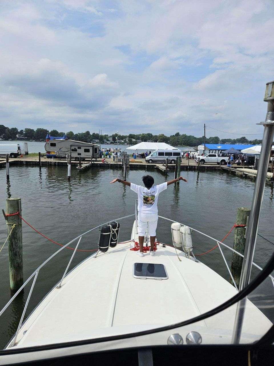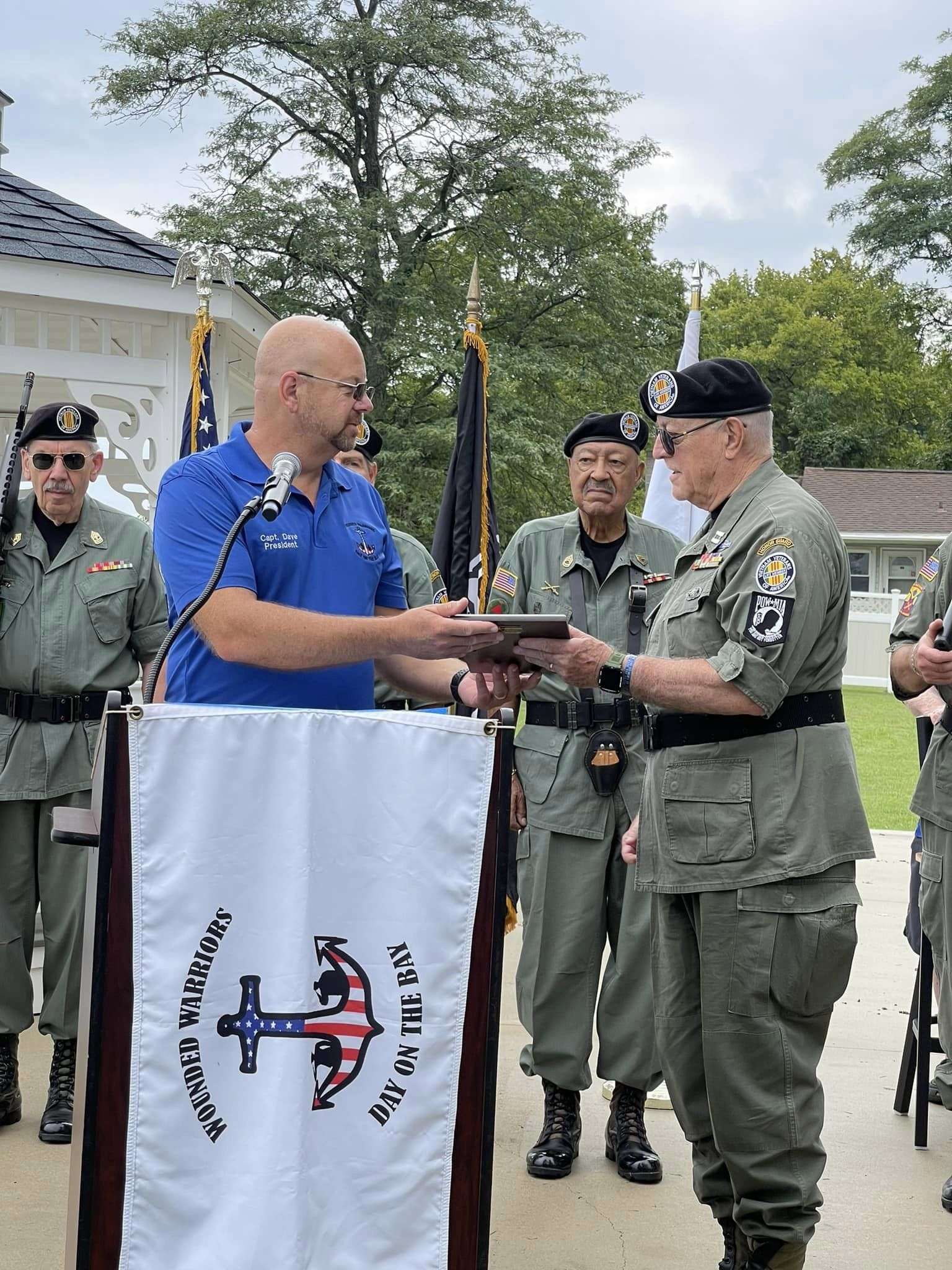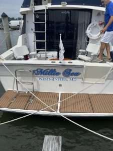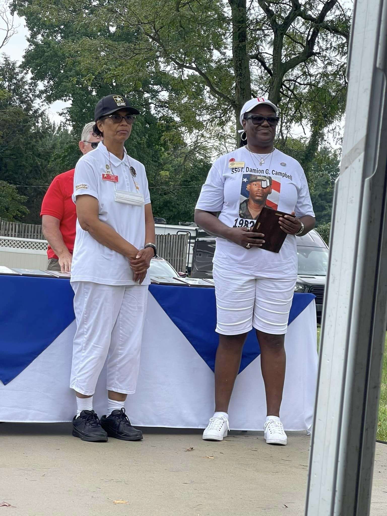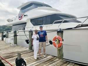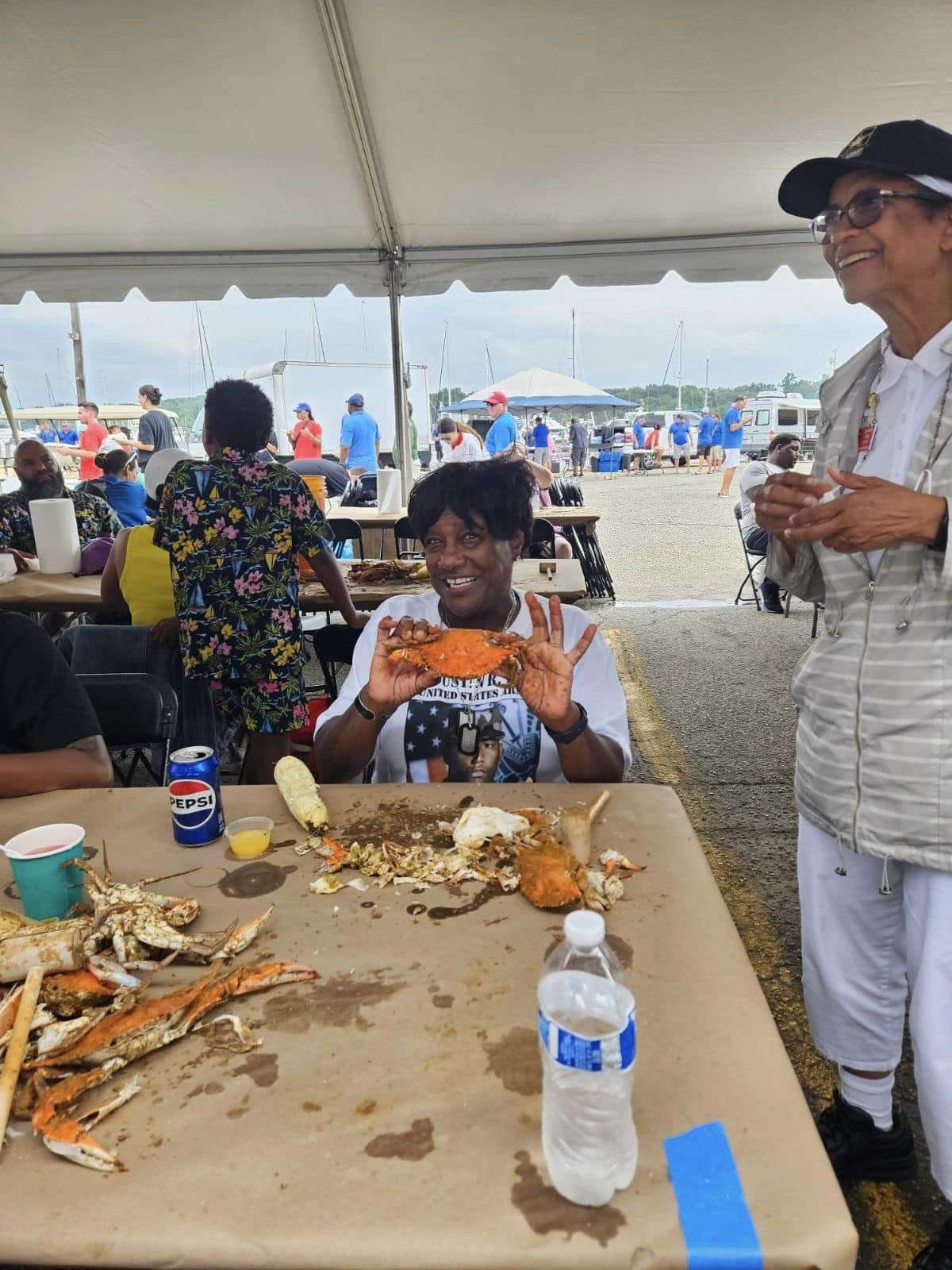 Gold Star Mothers Maryland Chapter members were invited by Mr. Mark Fitzpatrick, Co-Chair of the Sponsor Committee, Wounded Warriors on The Bay Day to attend and participate in their 12th Annual Wounded Warriors Day on The Bay event (WWDOTB). The purpose of the event is to provide a Stress-free Day on the Chesapeake Bay for Wounded Warriors (WW) and their families. Janice Chance, Stephanie White, Donna Robinson, and Paula Davis represented the Maryland Gold Star Mothers Chapter. There were approximately 200 people who attended this event, including wounded warriors and their families, Vietnam Veterans, Captains, and volunteers. A special recognition and appreciation ceremony was held for the Wounded Warriors. The ceremony was opened with the presentation of Colors. Katlyn Mitchell sang the National Anthem, and Brigadier General Reid Novotny, was the guest speaker. The Maryland Gold Star Mothers helped to present “Thank you for Your Service” plaques to the Wounded Warriors, who also received a challenge coin, an insulated cooler thermal bag, a gift card and several other gifts. The Gold Star moms also received recognition during the ceremony. The children received school backpacks filled with supplies and they were also treated to a variety of activities. Immediately after the ceremony, the WWs and their families and Gold Star moms were introduced to their assigned yacht Captain owner who would take them out on the Bay after lunch, which was provided by Mission BBQ. Gold Star moms were honored to join a WW and their family on the cruise. Yacht owners, who are members of several local yacht clubs, provided informative stories about the different landmarks as they toured the Bay into the Baltimore Harbor and back to the Maryland Yacht Club. They volunteered their resources, time, and vessels. Once the heroes and Gold Star moms returned from their cruise, they were treated to a feast that included steamed crabs, a variety of foods, and beverages which was provided by McKinney’s Catering. WWs were also given a raffle ticket as several donated items were raffled off. The fellowship was wonderful, the food was delicious, and the weather was delightful. The evening ended with TAPS . It was a GREAT DAY ON THE BAY!